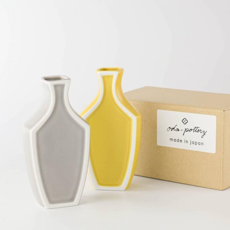 商品名 【ギフト】小田陶器 花色(hanairo) ふちどり花器 グレー&からし[定番][H1373]
