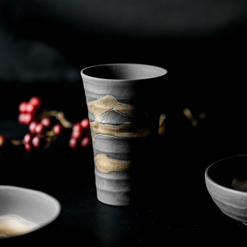 質感のあるカップでカランコロンと響く氷の音の至福の時間。一つ一つ違った表情を魅せてくれる、あなただけの金銀流しで今夜の晩酌はいかがですか?
