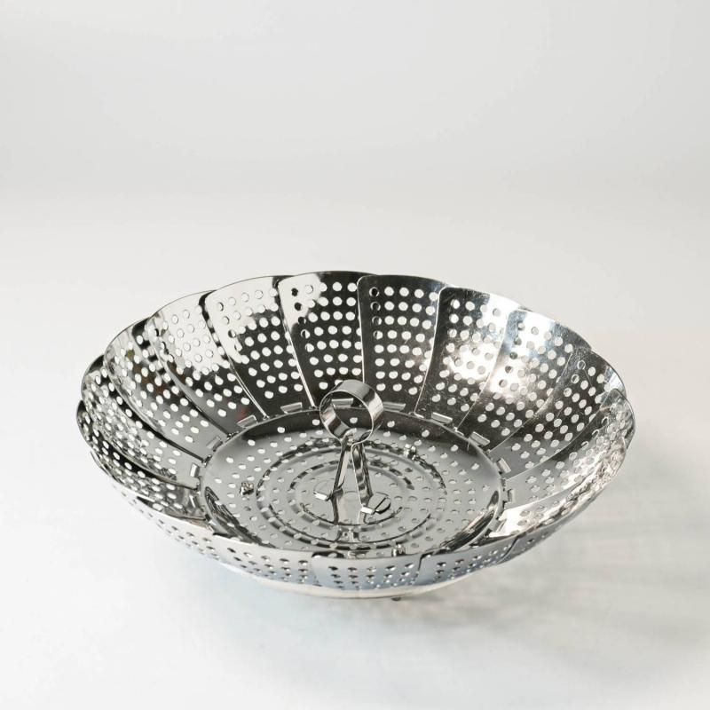 昔ながらの折りたたみ式の昭和レトロなデザインが特徴のステンレス製蒸し器です。シンプルな構造ながら、幅広い鍋のサイズに対応するフリーサイズ仕様。鍋の大きさを選ばず使えるので、便利さも抜群です。