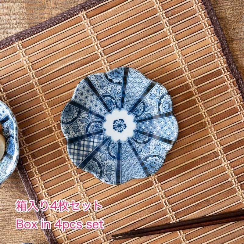 商品名【箱入り4枚セット】藍京花 16cm皿