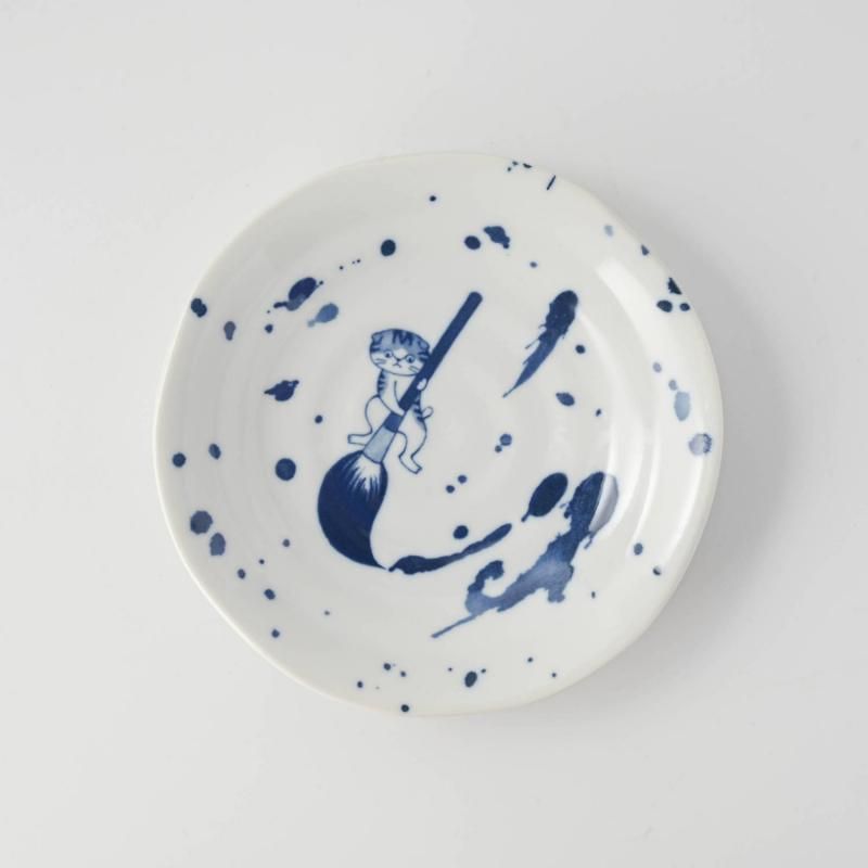 猫 シチタ ソメネコ 16.5cm皿 吹き墨[定番]