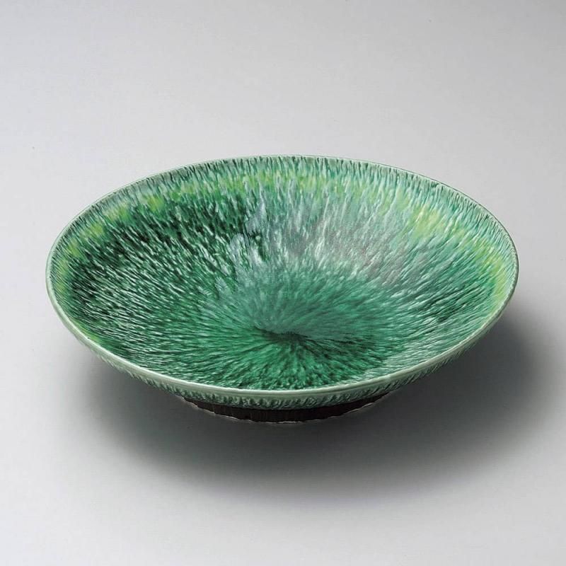 商品名緑釉黄流しとちり 高台 8.0鉢 24cm