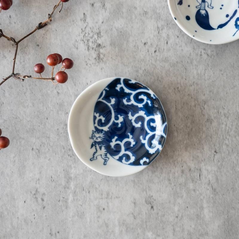 猫 シチタ ソメネコ 10cm小皿 唐草 日本伝統模様[定番]