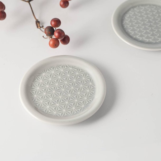 小田陶器 吉祥-kissho- 8.9cmフタ小皿 麻の葉 薄灰[定番]