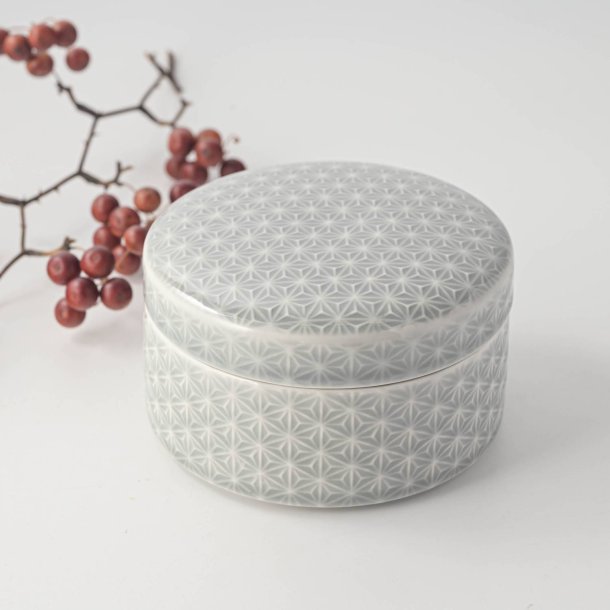 小田陶器 吉祥-kissho- 11.5cm蓋物 麻の葉 薄灰[定番]