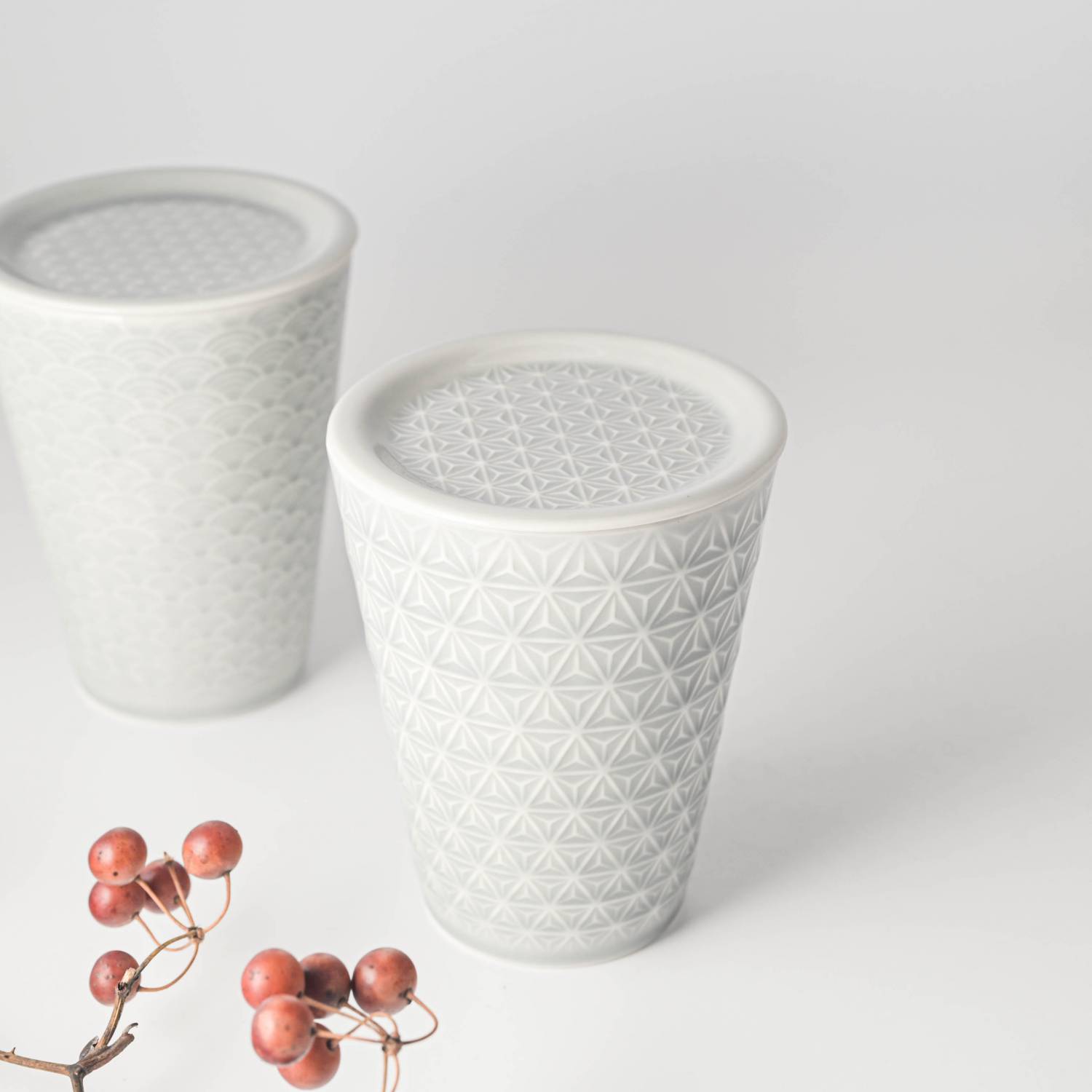 商品名小田陶器 吉祥-kissho- フタ&タンブラー 麻の葉 薄灰