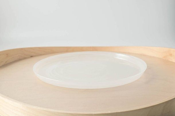 ガラス細工のようにアーティスティックに滲んだ紋様が美しいフラットプレート。